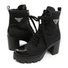 PRADA Cuir épais en nylon recyclé Bottines courtes à lacets avec logo triangulaire RE-NYLON